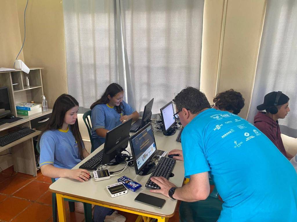 Alunos utilizando os computadores do projeto UTFPR/Rotary/magazine