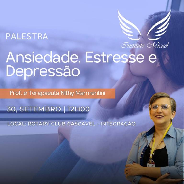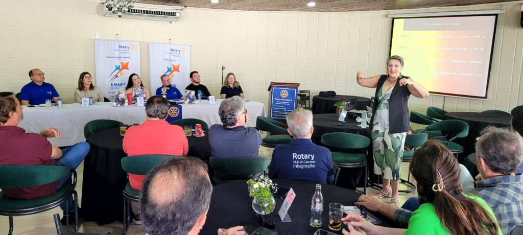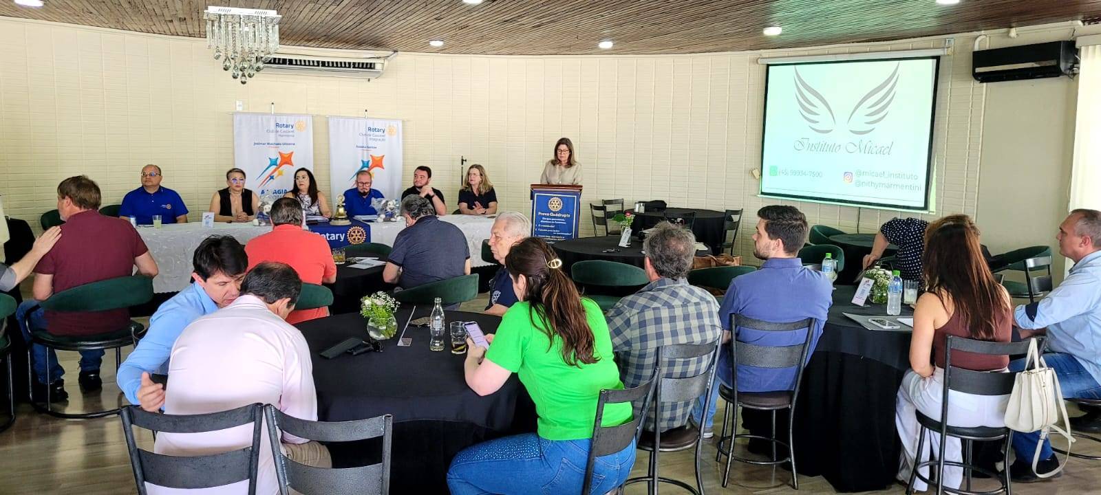 Para finalizar o mês Setembro Amarelo de prevenção ao suicídio, o Rotary Club de Cascavel-Integração e o Rotary Club de Cascavel-Harmonia, realizaram uma reunião conjunta no dia 29/09/2024 nas dependências do Country Club de Cascavel, onde foi proferida a palestra Ansiedade, Estresse e Depressão com a conceituada Professora e Terapeuta Nithy Marmentini do Instituto Micael, onde foram abordados assuntos de grande relevância para os associados e convidados de um tema muito atual e de muita relevância.
