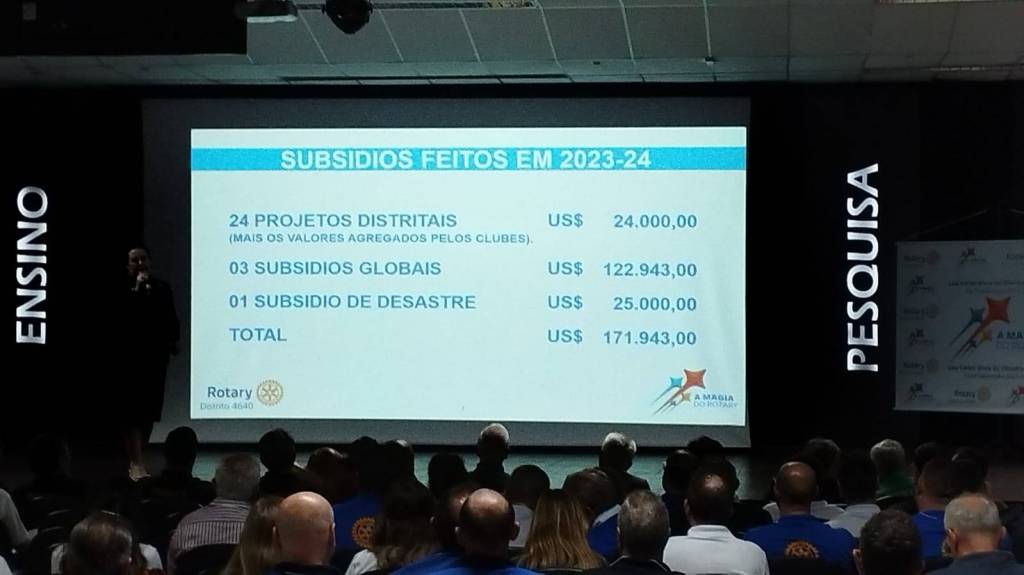 Além de palestras excelentes ministradas pelos competentes palestrantes do Distrito 4640, também foi divulgado os 20 (vinte) projetos distritais contemplados, os clubes ficaram em festa e teve um momento inusitado, o Rotaract recebeu o seu primeiro subsídio distrital da Fundação Rotária.