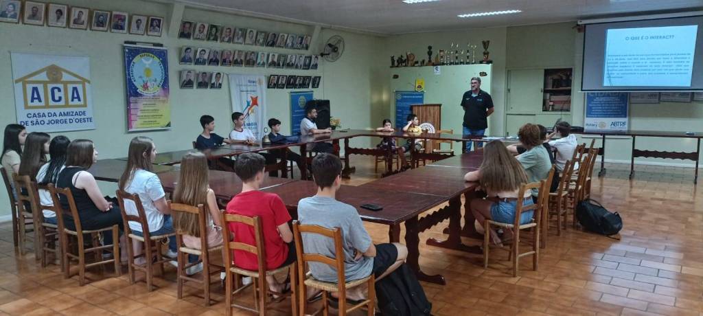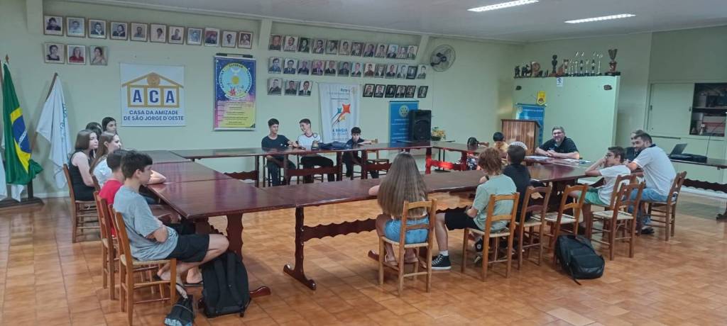 Nesta sexta-feira, dia 1º/11/24, os rotarianos do Rotary Club de São Jorge D’Oeste participaram da reunião do Interact Club de São Jorge D’Oeste, a qual foi conduzida pelo Presidente Rafael Belandi, supervisionada pelo Conselheiro do Interact o rotariano Sandro Chiarello. Na ocasião, 15 adolescentes, participaram da reunião com intuito de reestruturar o Interact para continuar o desenvolvimento de projetos, foi um momento de apresentação do Interact e troca de experiências com os rotarianos, após ocorreu momento de companheirismo sendo servido lanche aos participantes.