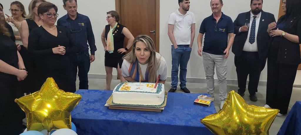 Para encerrar a noite com um toque simbólico, a presidente do clube, Keli Fernandes Campos, assoprou as velinhas de um bolo comemorativo, marcando oficialmente o 13º aniversário do Rotary Club de Francisco Beltrão Industrial. Esse gesto, carregado de emoção e significado, representou o agradecimento e a dedicação de cada membro que, juntos, construíram essa trajetória de conquistas. Com a presença dos jovens do Interact e um espírito de união, amizade e serviço, a noite foi uma celebração dos laços que unem o clube e a força coletiva que sustenta sua atuação em prol da comunidade.