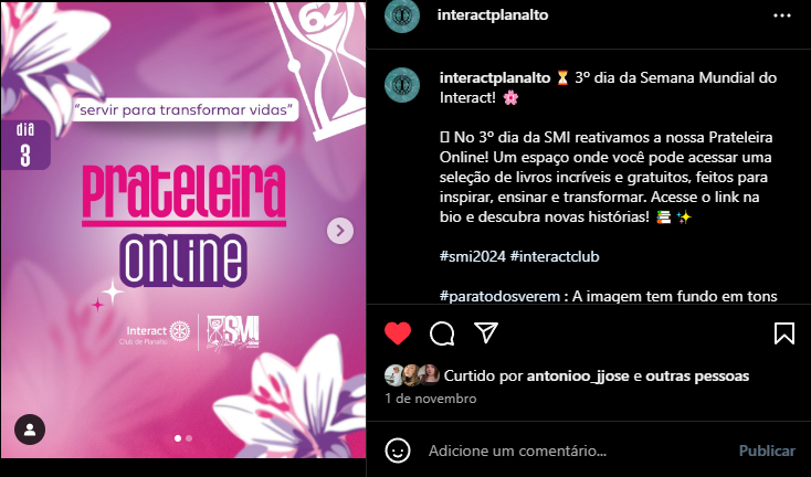 A publicação do link teve um bom alcance nas redes sociais, atraindo novas interações e comentários. Houve aumento nas visualizações da prateleira de livros, e o projeto não gerou despesas para o clube.