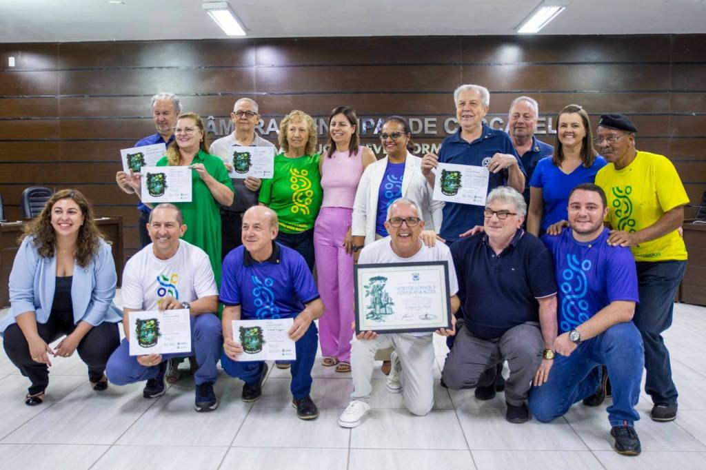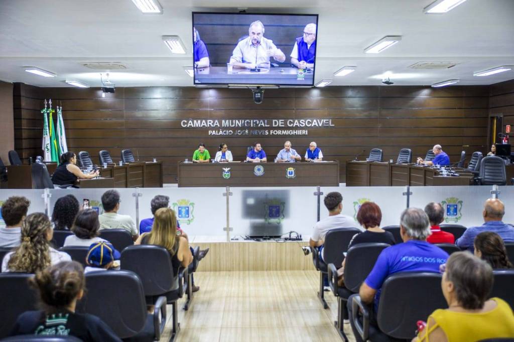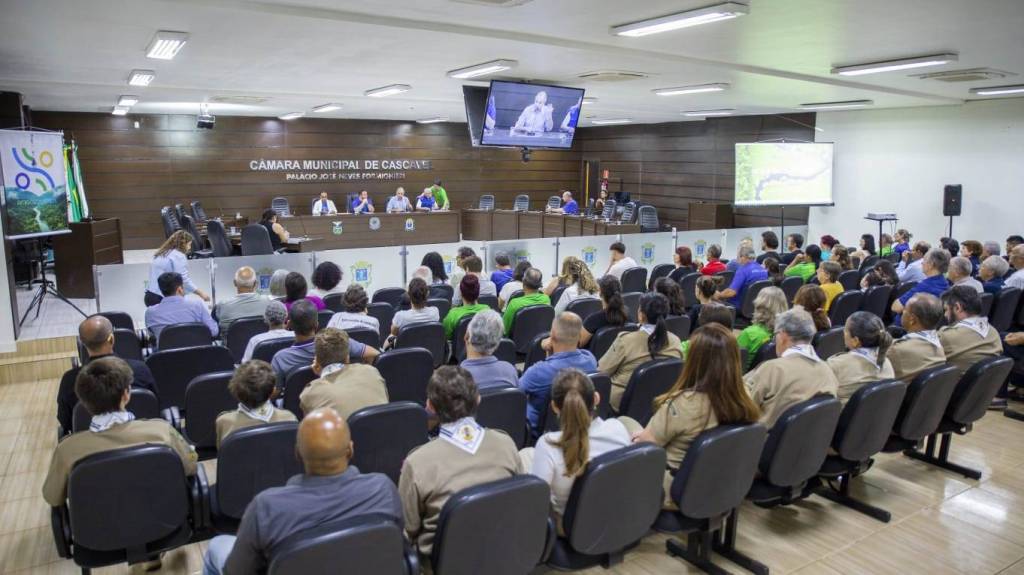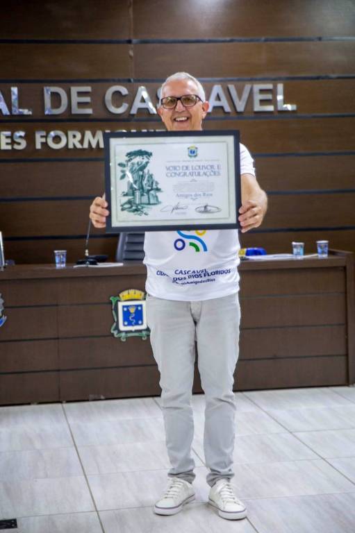 O auditório da Câmara Municipal de Cascavel esteve lotado no dia 25/11/2024 onde foi realizada a 22a. reunião ordinária do Rotary Club de Cascavel-Integração em homenagem ao Dia do Rio (24/11) e a ONG Amigos dos Rios com Votos de Aplauso e Congratulações proposta pela companheira e vereadora Beth Leal e aprovada por unanimidade pelos vereadores como reconhecimento aos serviços prestados nos 24 anos da ONG na área de meio ambiente.