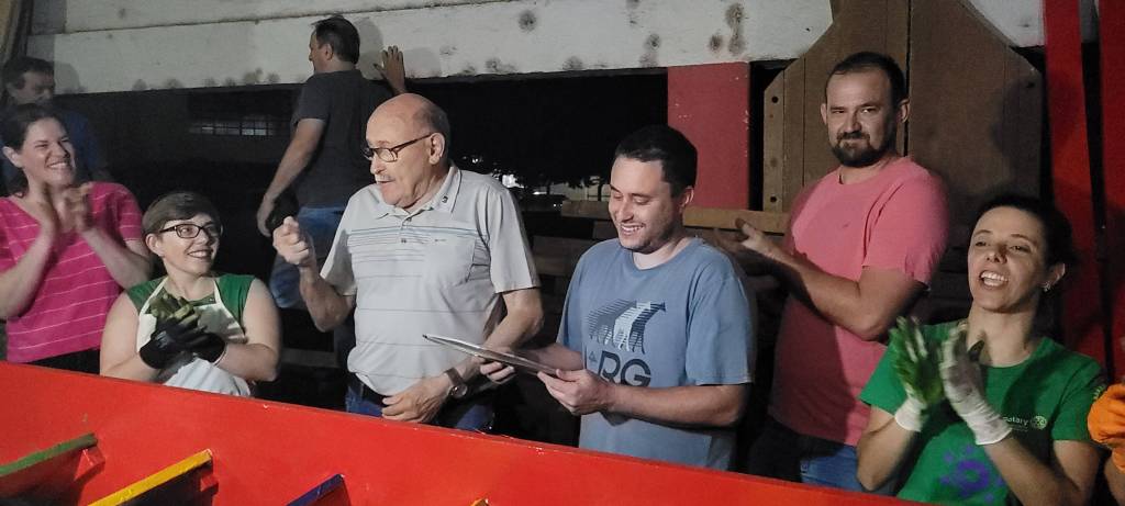 A entrega da Menção aconteceu nas dependências da Macari Móveis, uma fábrica especializada em móveis sob medida, planejados e rústicos. Na ocasião, os companheiros do clube estavam engajados na pintura das estruturas que serão utilizadas na montagem da casinha na árvore, um projeto que reflete o compromisso contínuo do Rotary com ações que promovem educação e bem-estar infantil.