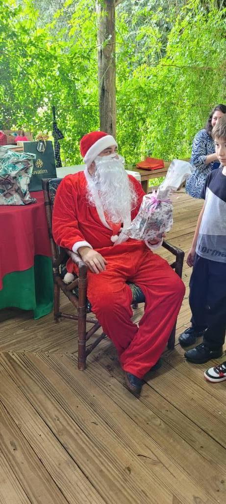 A magia do Natal também esteve presente, com a participação do Papai Noel, que trouxe alegria para as crianças ao distribuir presentes. Além disso, a tarde contou com a tradicional revelação do Amigo Secreto, fortalecendo os laços de amizade e companheirismo entre os membros do clube.