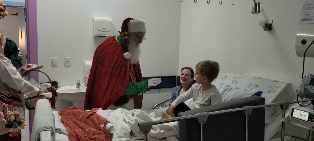 Na manhã de domingo, dia 15 de dezembro, o Projeto Semeando Sorrisos, do Rotary Club de Francisco Beltrão Industrial, promoveu uma ação especial neste Natal, levando o encanto da data ao lado do Papai Noel para pacientes e funcionários do Hospital São Francisco e do Hospital Regional do Sudoeste.