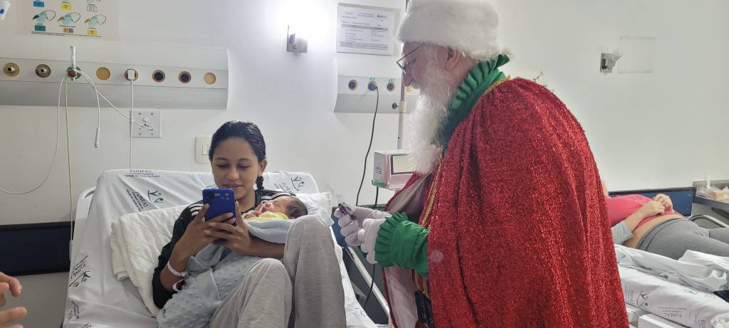 O momento mais emocionante aconteceu na ala de maternidade, onde Papai Noel teve a oportunidade de conhecer os pequenos gêmeos Edinei e Edinara, de apenas um dia de vida, vindos da cidade de Barracão. A visita proporcionou às famílias presentes a chance de registrar a primeira foto dos recém-nascidos ao lado do bom velhinho, um momento repleto de significado e ternura.