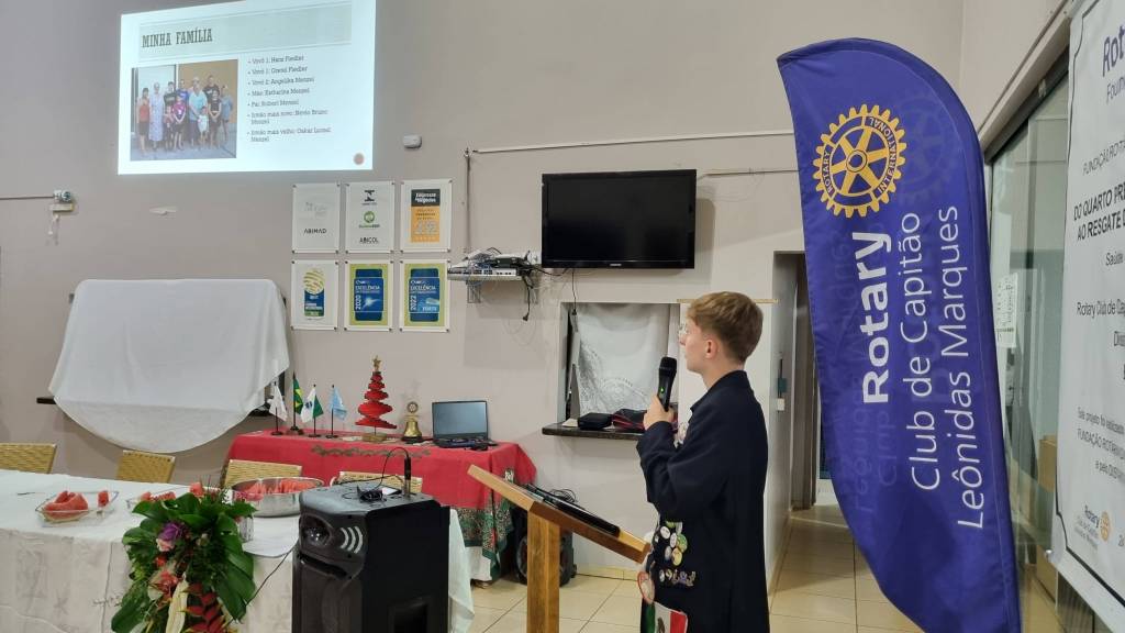 Nicolly Dallagnol falou sobre os clubes Interact e o recém criado Rotaract e o intercambista Leandro que é da Alemanha e está fazendo intercâmbio pelo Rotary em Capitão, falou um pouco dos costumes e tradições em seu país.