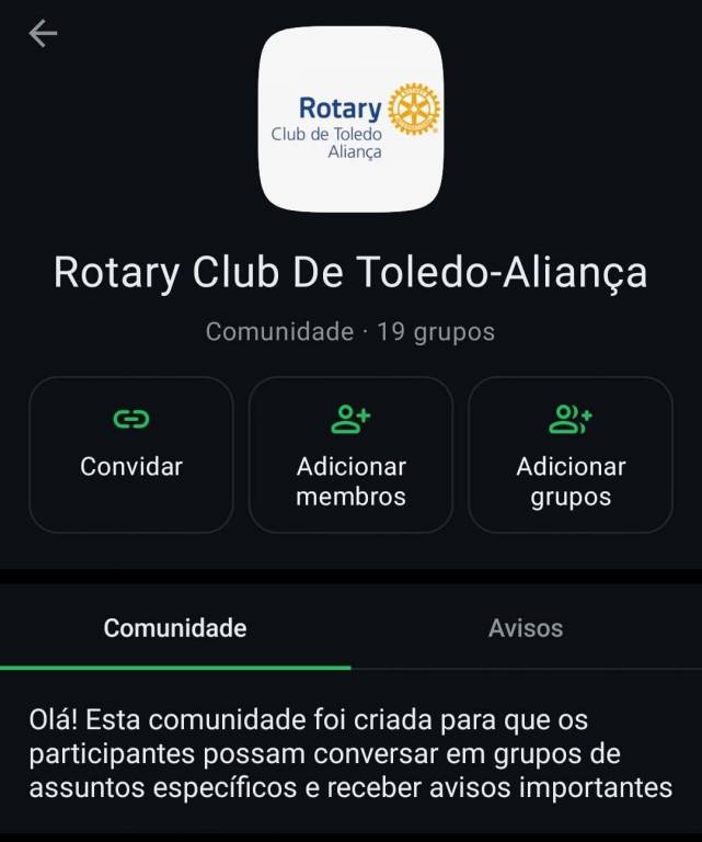 O Rotary Club de Toledo - Aliança está inovando sua comunicação! Agora, todos os associados podem contar com uma comunidade exclusiva no WhatsApp, uma iniciativa da Imagem Pública do clube para facilitar o acesso às informações e melhorar a organização interna.