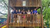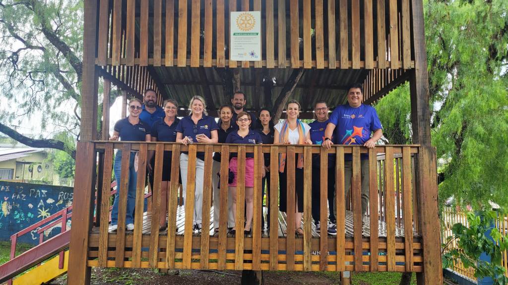 Em seguida, a comitiva dirigiu-se ao CMEI Delfo Fregonese, onde conheceram a primeira casinha na árvore construída pelo clube, em 2019.