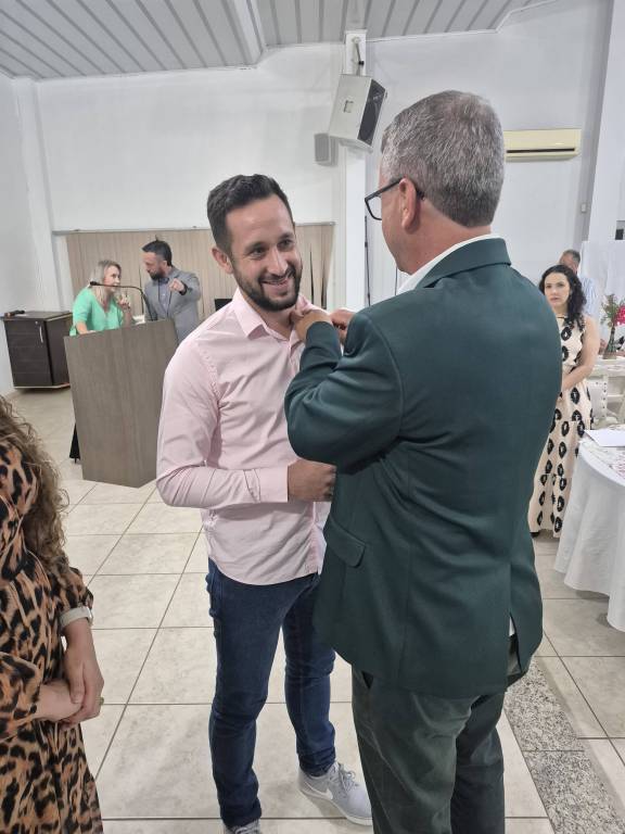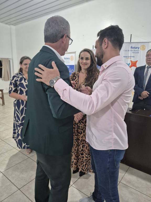 O momento especial com seu padrinho, o companheiro Ademar Spinello, que teve a satisfação de apresentá-lo ao clube. Que esta nova jornada no Rotary seja repleta de aprendizado, engajamento e realizações!
