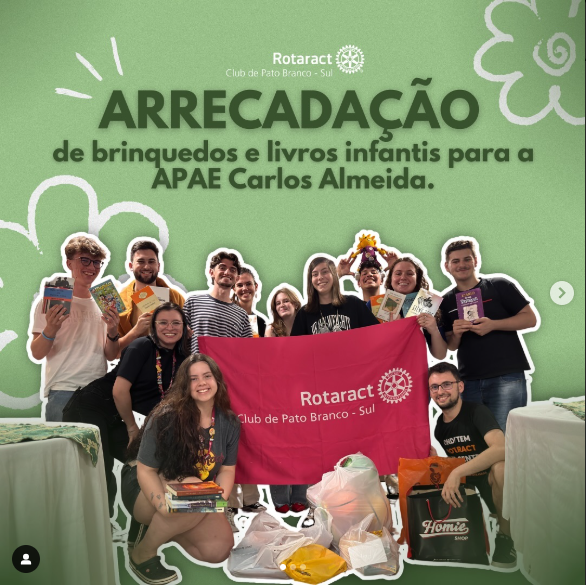 No dia 15/10, nosso Rotaract Club entregou as doações arrecadadas em prol do mês do Setembro Verde e do dia das crianças para a APAE Carlos Almeida!
