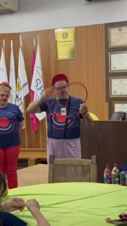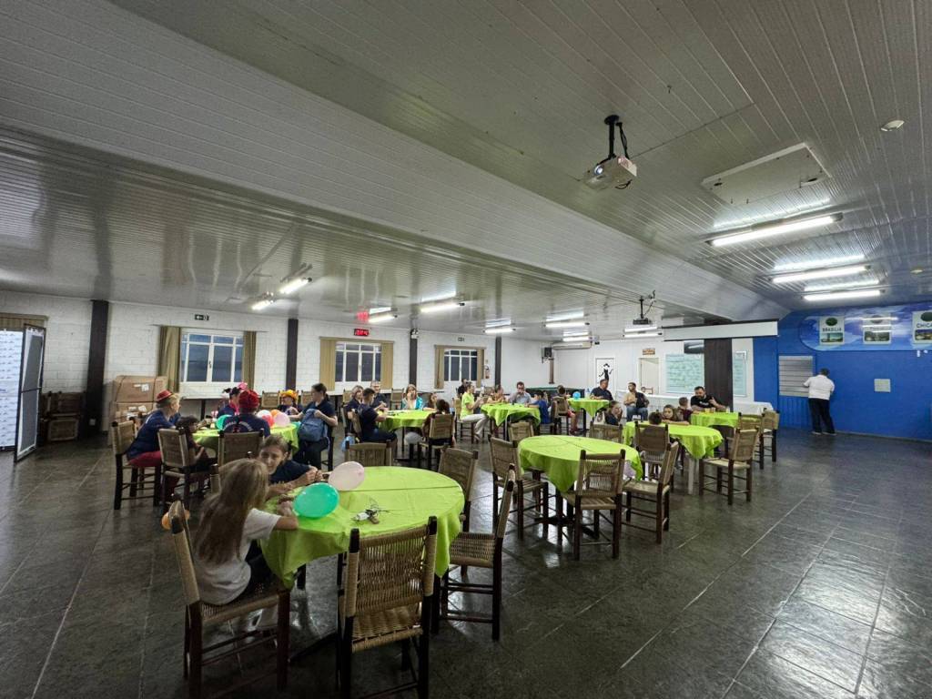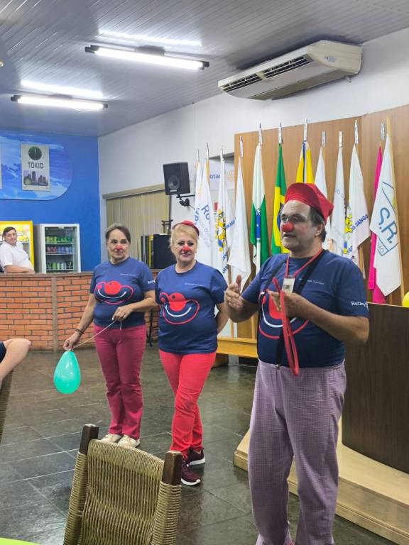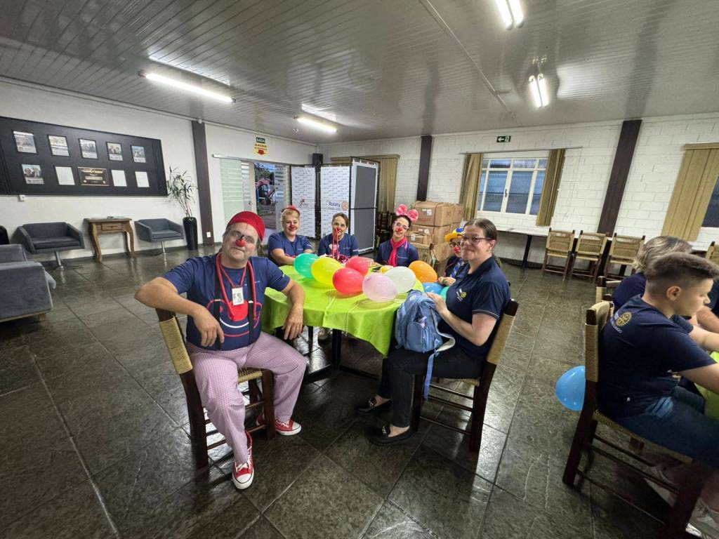 Um dos momentos mais marcantes da reunião foi a participação do Projeto Semeando Sorrisos, com a presença da coordenadora Telma Kniphoff e do palhaço Zé Carlos. A dupla encantou as crianças com apresentações lúdicas, contando a história do projeto por meio de brincadeiras e muita animação.