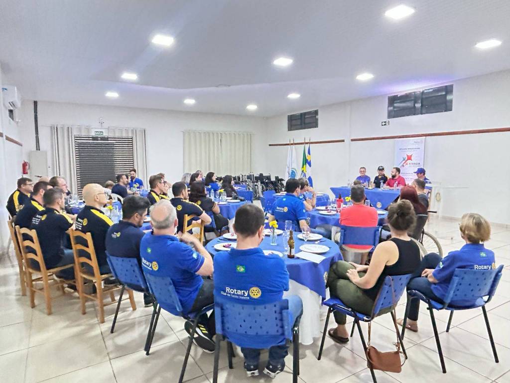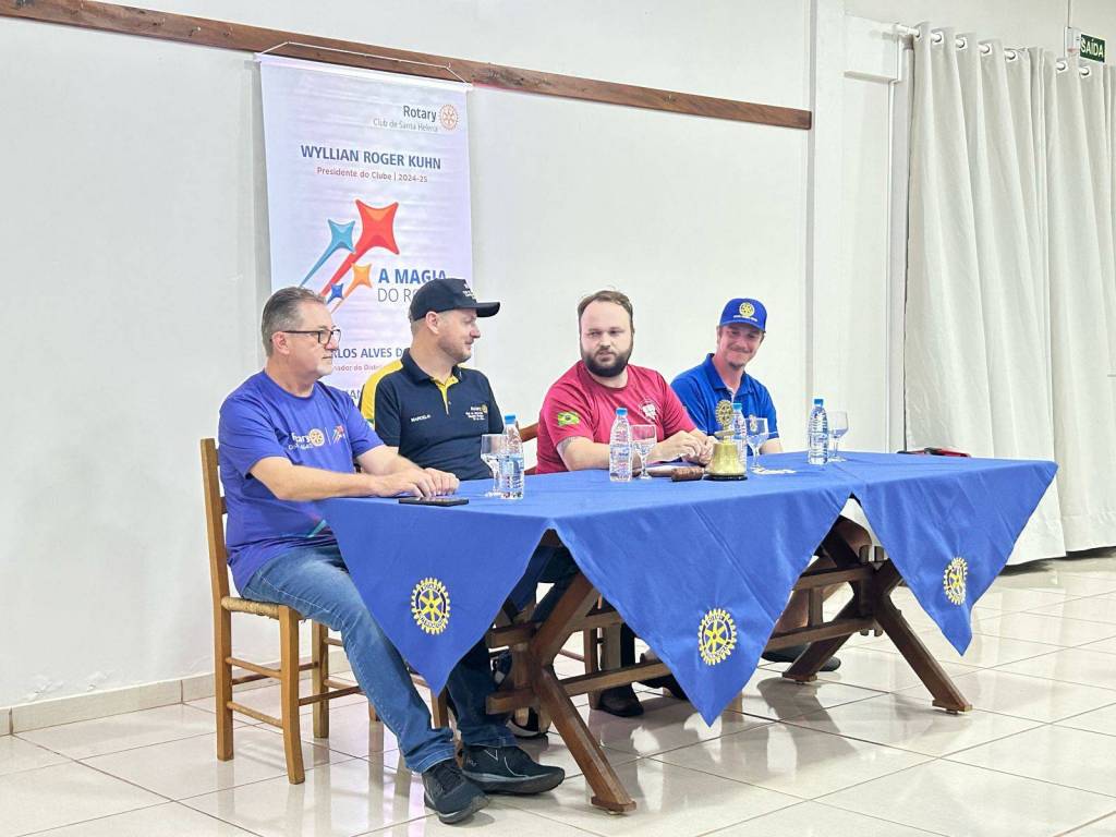 Na noite de ontem, o Rotary Club de Santa Helena viveu um momento especial de confraternização e solidariedade ao receber os Companheiros do Rotary Club 25 de Julho, de Marechal Cândido Rondon. A reunião festiva foi marcada por um verdadeiro espírito rotário, fortalecendo laços de amizade e compromisso com o servir.