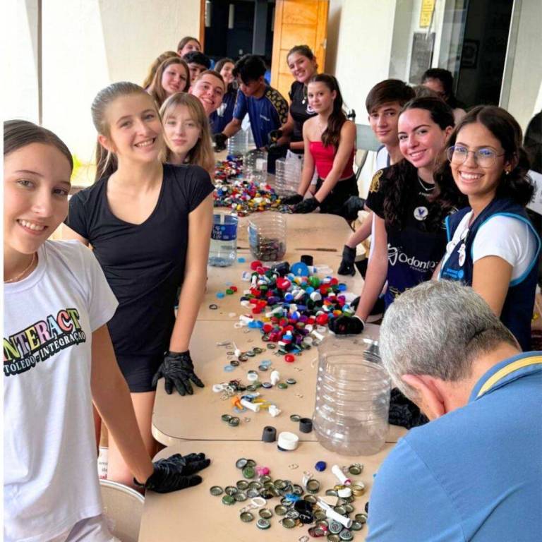 A Casa da Amizade foi palco de um dia especial de solidariedade e trabalho em equipe. A ação, promovida pelo Rotary Club Toledo Integração, Rotaract, Interact e a Associação Casa da Amizade (ACA), uniu pessoas de todas as idades para contribuir com o projeto Lacre e Tampinha Amiga. A proposta da ação foi simples, mas de grande impacto: a separação de lacres e tampinhas de plástico para arrecadar recursos que serão destinados à compra de cadeiras de rodas, cadeiras de banho e andadores para a população carente.