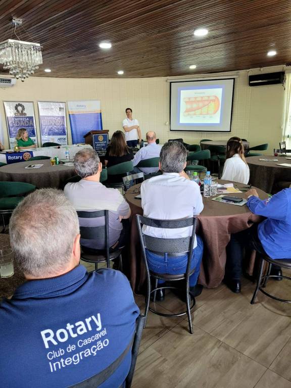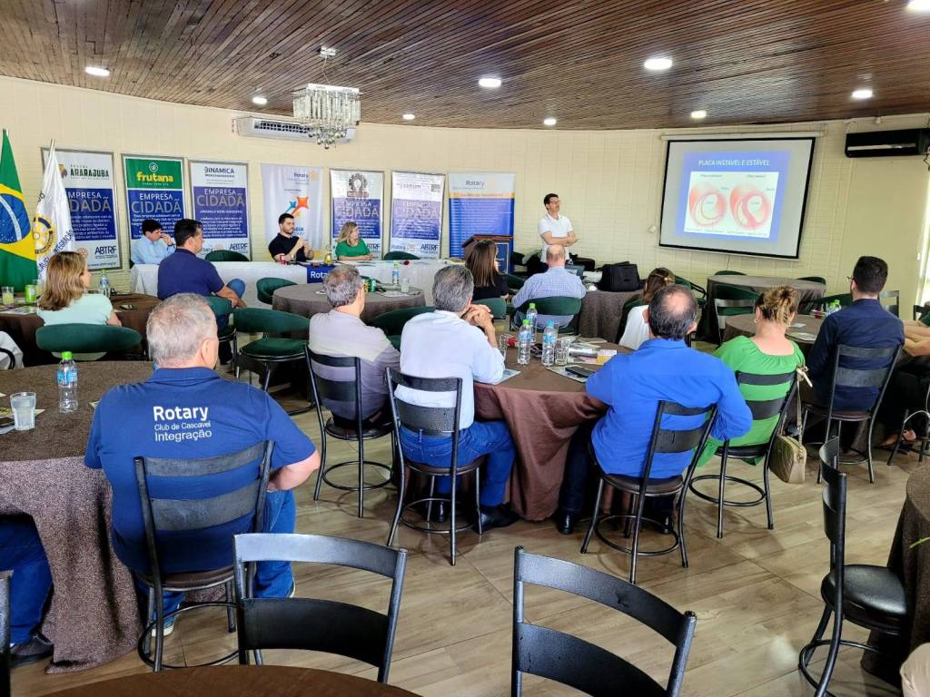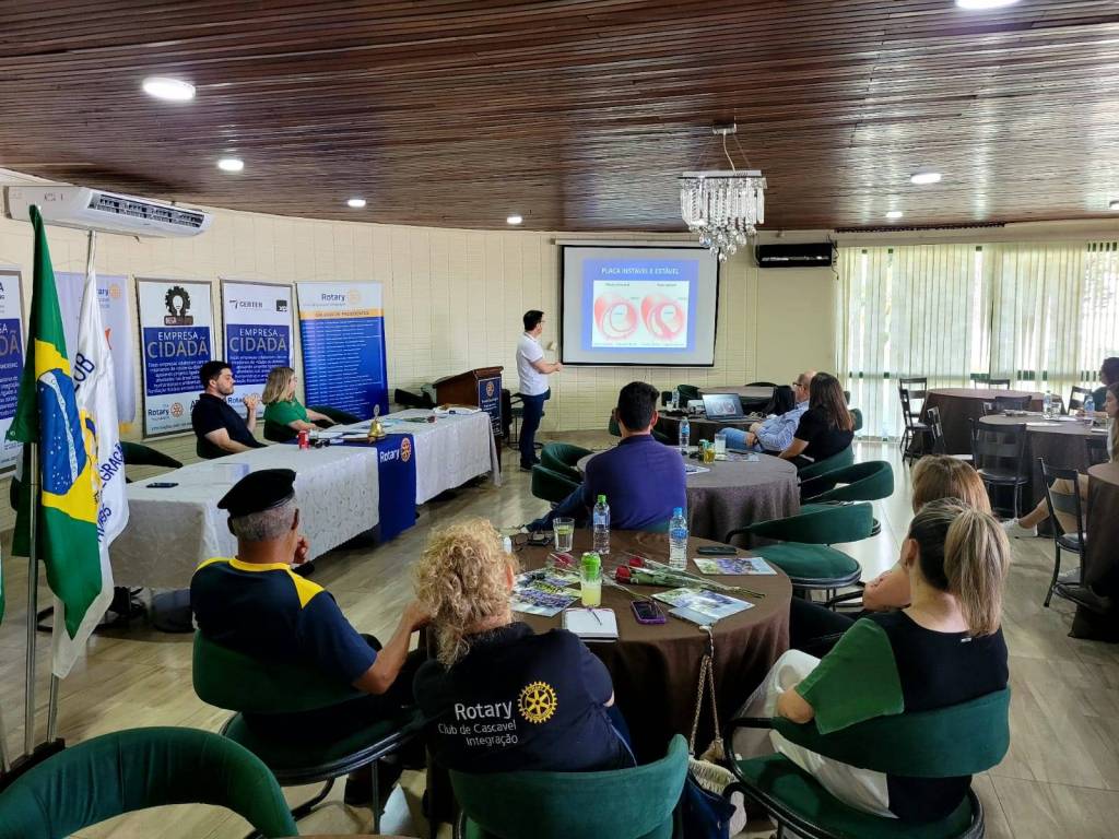 Na reunião ordinária do Rotary Club de Cascavel-Integração realizada no dia 10/03/2025 nas dependências do Country Club de Cascavel, com a presença de associados do clube, familiares e convidados foi ministrada pelo médico cardiologista Dr. Sandro Buss, a palestra sobre Aterosclerose - sintomas e tratamentos. O tema de suma importância para a saúde foi abordado de maneira a esclarecer e conscientizar os presentes da necessidade de exames periódicos e intervenções em caso de necessidade, além da prática de exercícios físicos e manutenção de uma dieta saudável afim de prevenir possíveis complicações causadas pela doença.