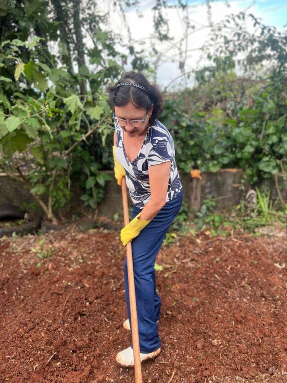 "Quero agradecer especialmente ao pessoal do Rotary Club, que fez um excelente trabalho aqui na Pastoral da Criança. Eles revitalizaram a horta, plantaram diversas ervas medicinais, removeram árvores que faziam sombra e ajudaram a estruturar melhor o espaço. Isso é muito gratificante, pois os chás que foram plantados ajudarão muito tanto as crianças quanto os adultos. Utilizamos essas ervas na produção de xaropes e pomadas, e precisamos muito desse apoio. Agradeço de coração o carinho que tiveram com a Pastoral da Criança e peço a Deus que os abençoe sempre com muita saúde."