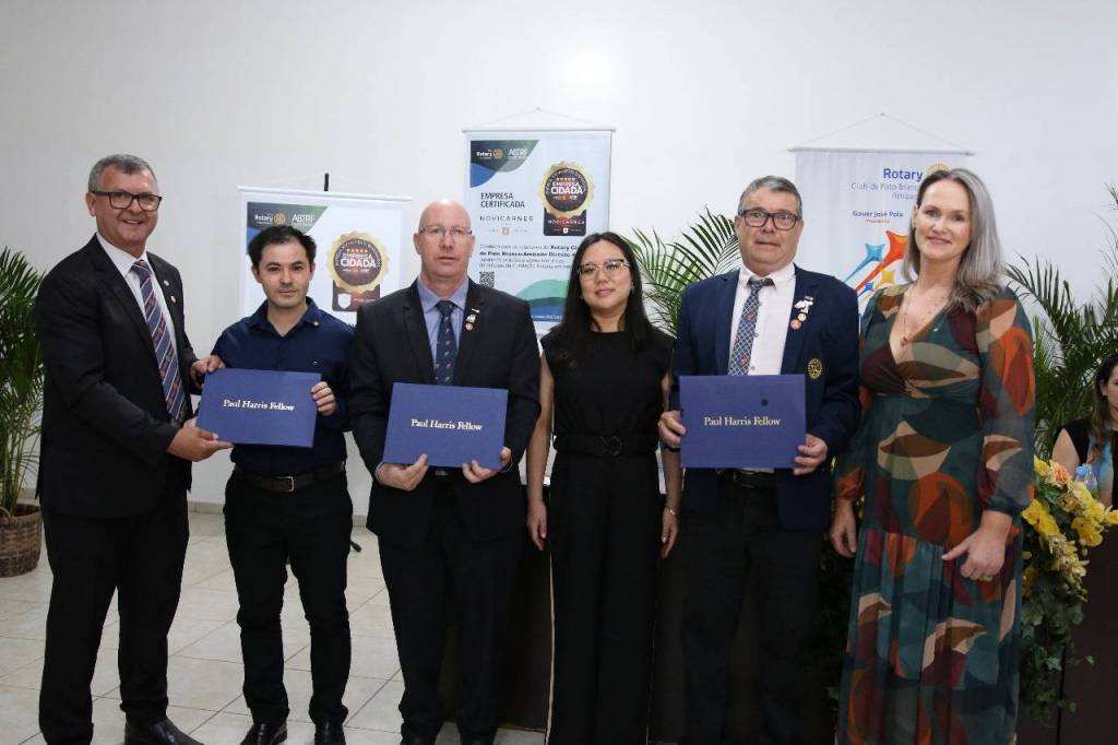 Durante a cerimônia, houve uma homenagem especial aos quatro rotaractianos que, movidos pelo ideal de servir à comunidade, se uniram para idealizar a criação de um novo clube de Rotary. Graças à visão e ao trabalho de Luiz Vicente Mattias, Zeno Schimidt, Alaerte Cardoso e Ademar Galeazzi, o Rotary Club de Pato Branco-Amizade foi fundado em 29 de março de 1995. Entre os fundadores, Luiz e Zeno ainda permanecem ativos no clube, continuando a trajetória de dedicação ao serviço e ao companheirismo.