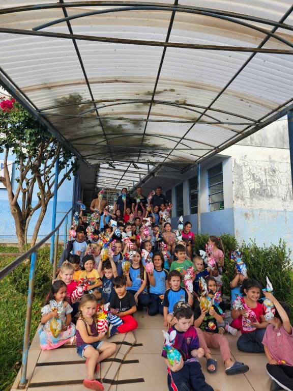 Deste modo, no primeiro momento foram confeccionados 80 ovos. Com o passar dos anos o projeto foi tomando forma, e hoje atende aproximadamente 1.300 crianças de nossa Tri Fronteira, “tanto da Zona Rural como na Área Urbana”.