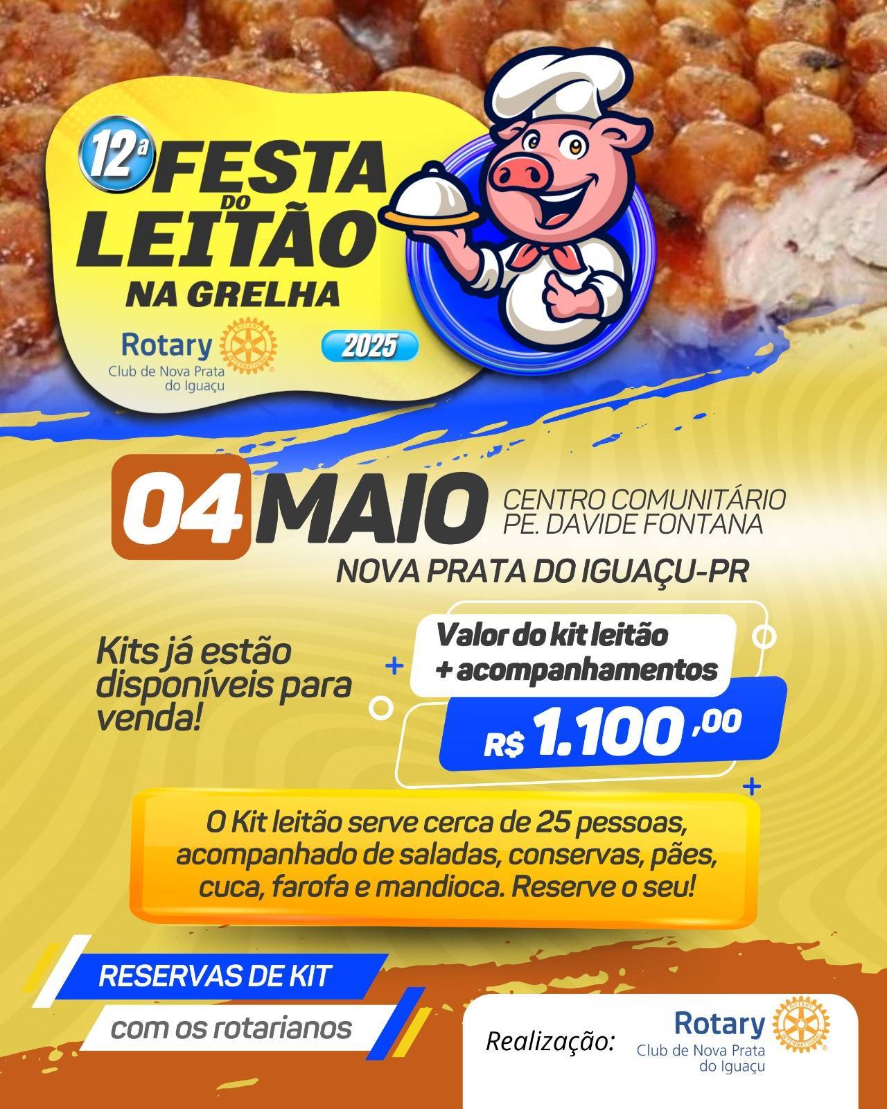 Dia 4 de maio acontece a tradicional Festa do Leitão na Grelha do Rotary Club