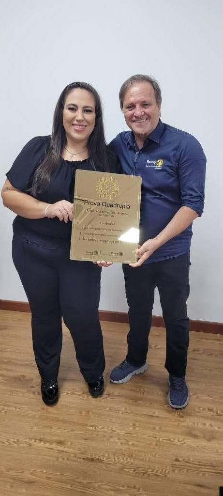 A cerimônia de admissão foi um dos pontos altos da noite. Com alegria e orgulho, o clube recebeu oficialmente quatro novos integrantes: Bruna Kremer Lodi, Bruno Rosa, Patrícia Lara e Telma Kniphoff. A entrada dos novos companheiros simboliza a renovação e o fortalecimento do clube, reafirmando o compromisso rotário com a formação de lideranças, a ampliação do serviço humanitário e a construção de um futuro ainda mais participativo e engajado.
