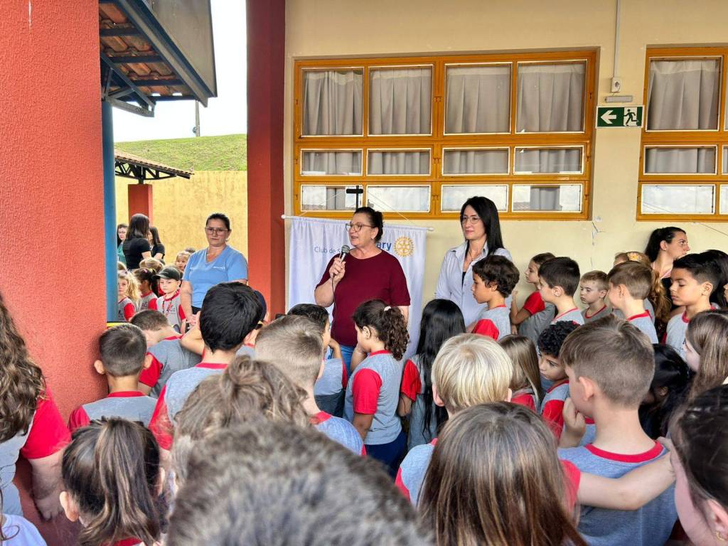 Ainda fez o uso da palavra a Secretária de Educação Sra. Neide Lourencena a qual agradeceu ao Rotary e Cresol pela iniciativa relatando que parcerias como essas fazem toda a diferença para a Educação.