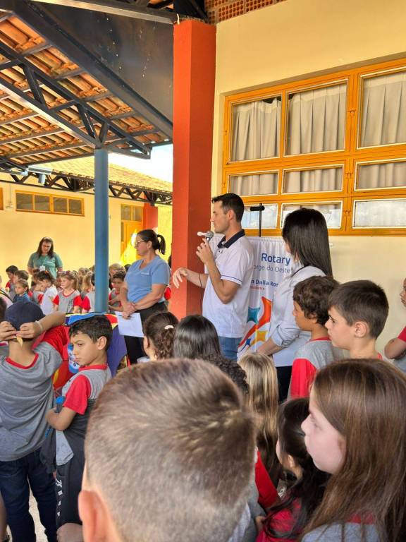 Fabricio Klering em sua fala representando o Rotary, destacou a alegria do Rotary em poder estar contribuindo com a Educação, uma das áreas de enfoque do Rotary, falou também na parceria entre a Escola São Jorge que confiou no Rotary quando buscou parceria para suprir uma demanda e por sua vez o Rotary conseguiu contemplar o projeto junto ao Fundo Social da Cresol que já é parceira do Rotary a muitos anos, sabendo da seriedade e do comprometimento no clube na comunidade. Entregar este projeto é fazer a "Magia do Rotary acontecer".