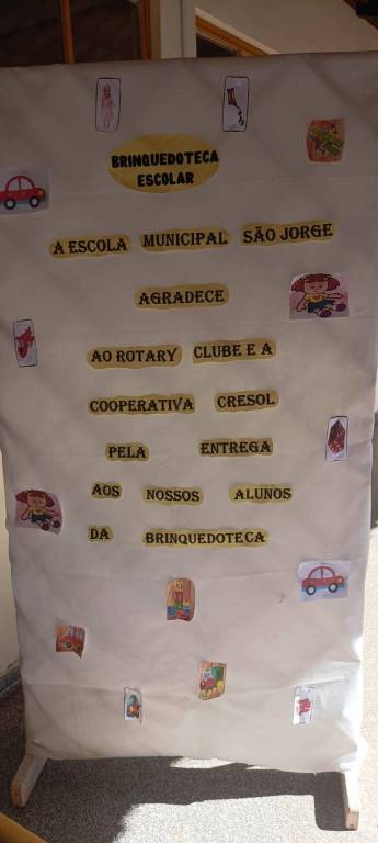 O Rotary Club de São Jorge D’Oeste entregou na tarde desta segunda-feira dia 19 de maio de 2025, uma brinquedoteca na Escola Municipal São Jorge, a iniciativa foi possível graças a aprovação do projeto “BRINQUEDOTECA DO SABER” junto ao Fundo Social da Cooperativa CRESOL Liderança através da agência de São Jorge D’Oeste, o presente projeto contemplou a compra de vários brinquedos para incrementar as atividades pedagógicas da escola que atende alunos até a 5ª série.