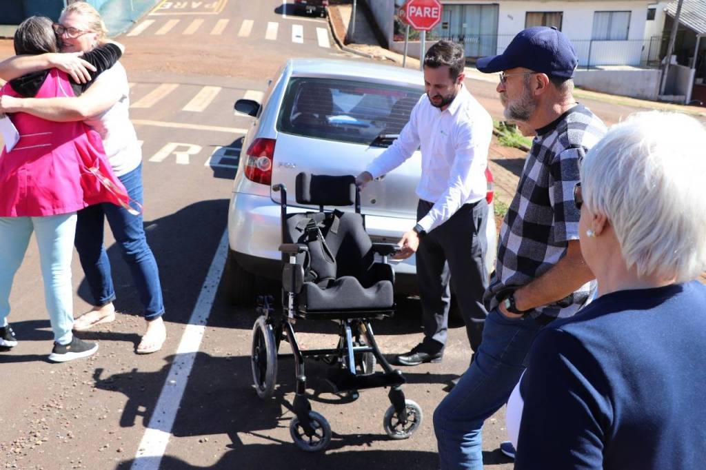 Aluna da APAE de Pato Branco Recebe Cadeira Especial por Meio do Projeto "Tampinha + Lacre do Bem"