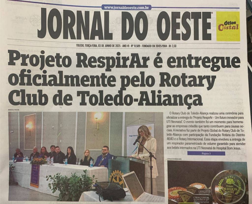 O Projeto do Rotary Club de Toledo Aliança tem o nome “Respirar: um futuro inovador para a UTI Neonatal”, passou pela aprovação do conselho técnico do distrito e também aprovação internacional nos Estados Unidos da América.