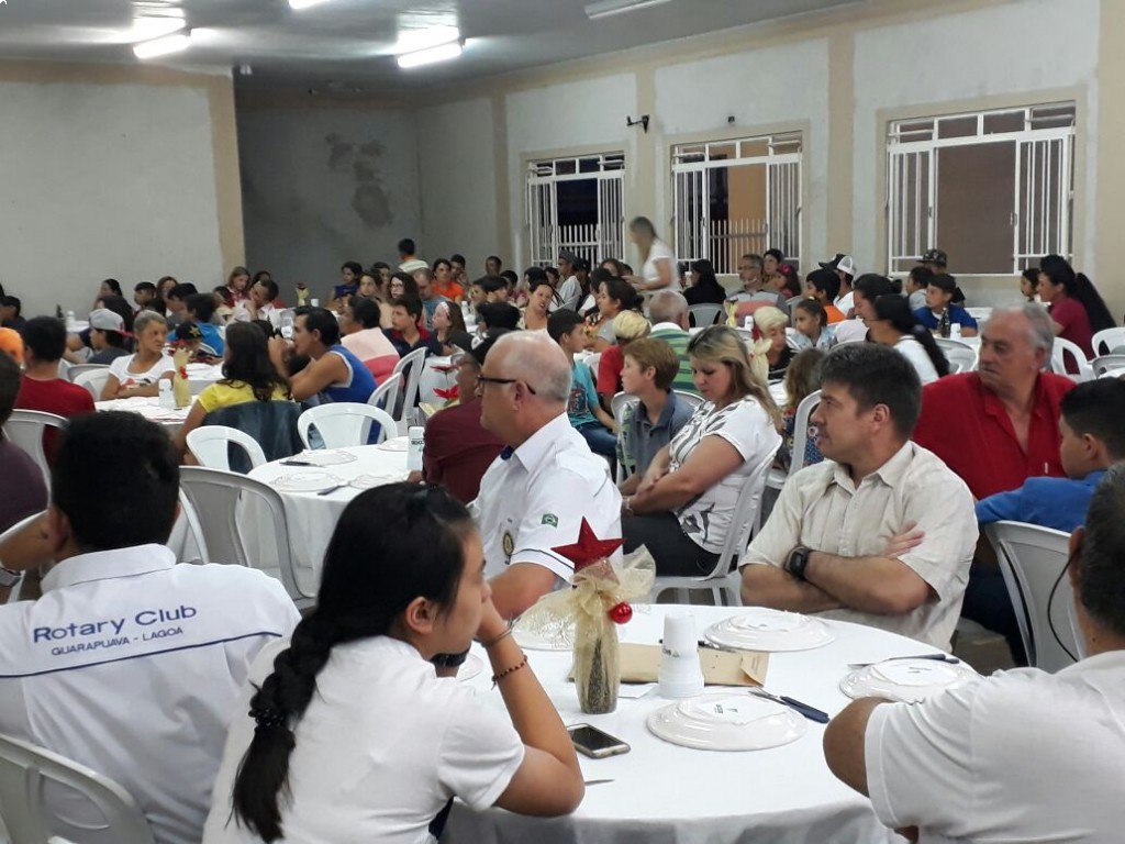 A PROMOÇÃO DE UM JANTAR DENTRO DA REUNIÃO DO CLUBE FOI MUITO BEM RECEBIDA PELOS ALUNOS E FAMÍLIAS, POIS FOI UMA FORMA DE INCENTIVAR AS FAMÍLIAS EM APOIAR O PROJETO E TAMBÉM NA APROXIMAÇÃO DOS ADOLESCENTES COM OS COMPANHEIROS DO ROTARY CLUB GUARAPUAVA LAGOA. PARTICIPARAM TAMBÉM DO EVENTO OS SOLDADOS DALLA COSTA E PONTES QUE TAMBÉM COORDENAM ATIVIDADES DESPORTIVAS COM OS GAROTOS.