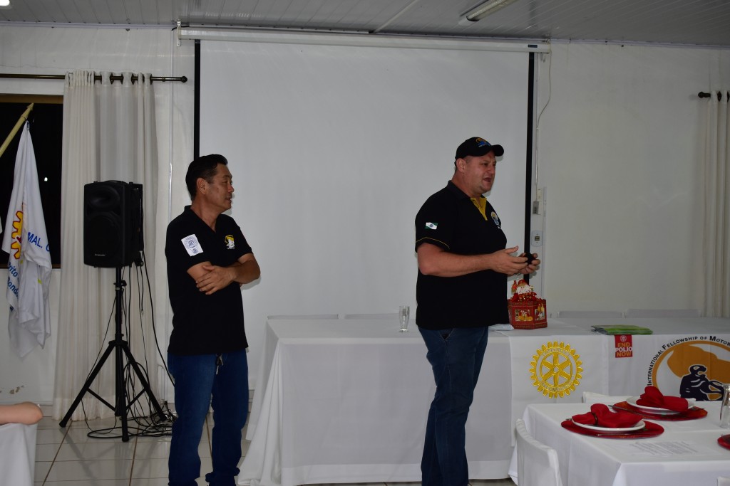 Integrantes do IFMR-South, grupo de companheirismo de rotarianos motociclistas, repentinamente adentraram na Casa da Amizade, para fazer uma entrega ao Presidente do Clube, Rosemir César Mengarda.