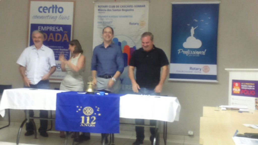 Na 19ª Reunião Ordinária do Rotary Club Sonhar, sob a responsabilidade da presidente Márcia Nogueira, realizada em 24 de janeiro, contamos com a presença do governador 2001/2002 Emílio Martini e Paulino Peternela do Rotary Club União. Na ocasião o companheiro Adilton Torazzi, governador assistente do distrito, esclareceu os encaminhamentos a serem dados para a produção do Guia Distrital e a oportunidade de os companheiros contratarem patrocínios para o mesmo. Na mesma oportunidade houve uma singela homenagem, por parte dos membros da mesa e do companheiro Cleon ao Primeiro Presidente do Rotary Club Sonhar, Jaime Tadim que está se ausentando do Club por motivo de mudança a outro estado. Na ocasião foi recomendada a menção de sócio honorário, dada a sua contribuição valorosa ao clube.