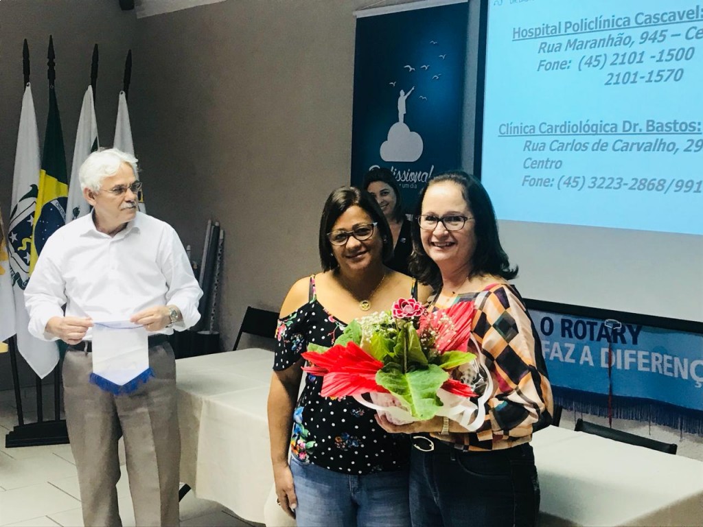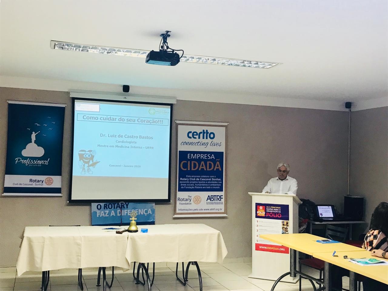 Na 20ª Reunião Ordinária do Rotary Club Sonhar, sob a responsabilidade da presidente Márcia Nogueira e realizada em 31 de janeiro, contamos com a presença do Dr. Luis de Castro Bastos, médico cardiologista e da Dra. em Educação, professora associada da Universidade do Oeste do Paraná, Carmem Célia Bastos. Na ocasião o Dr. Luis Bastos fez uma fala muito clara e eloquente, com apontamentos significativos em relação à observação de fatores que predispõem às doenças cardiovasculares, bem como comportamentos positivos que visam o cultivo de hábitos alimentares e cotidianos a fim de preservar a saúde. Houve também a elucidação da importância de visitas periódicas aos profissionais competentes, a fim de fazer acompanhamento das condições cardíacas. Na mesma oportunidade houve a entrega da flâmula do Rotary Club Sonhar e de um mimo, por parte dos companheiros Cleide Oldoni e Marcos José aos ilustres convidados.
