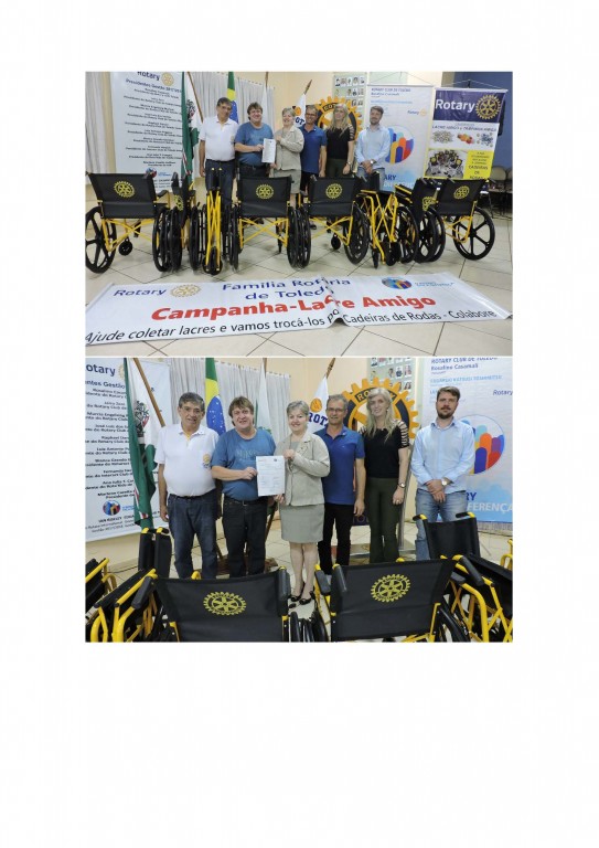 ENTREGA DE 8 CADEIRAS DE RODA EM CONJUNTO COM A FAMILIA ROTARIA DE TOLEDO - MONTAGEM DO KIT COMERCIAL PARA VENDA DA 17ª MEIA MARATONA - E 113 ANOS DO ROTARY INTERNACIONAL