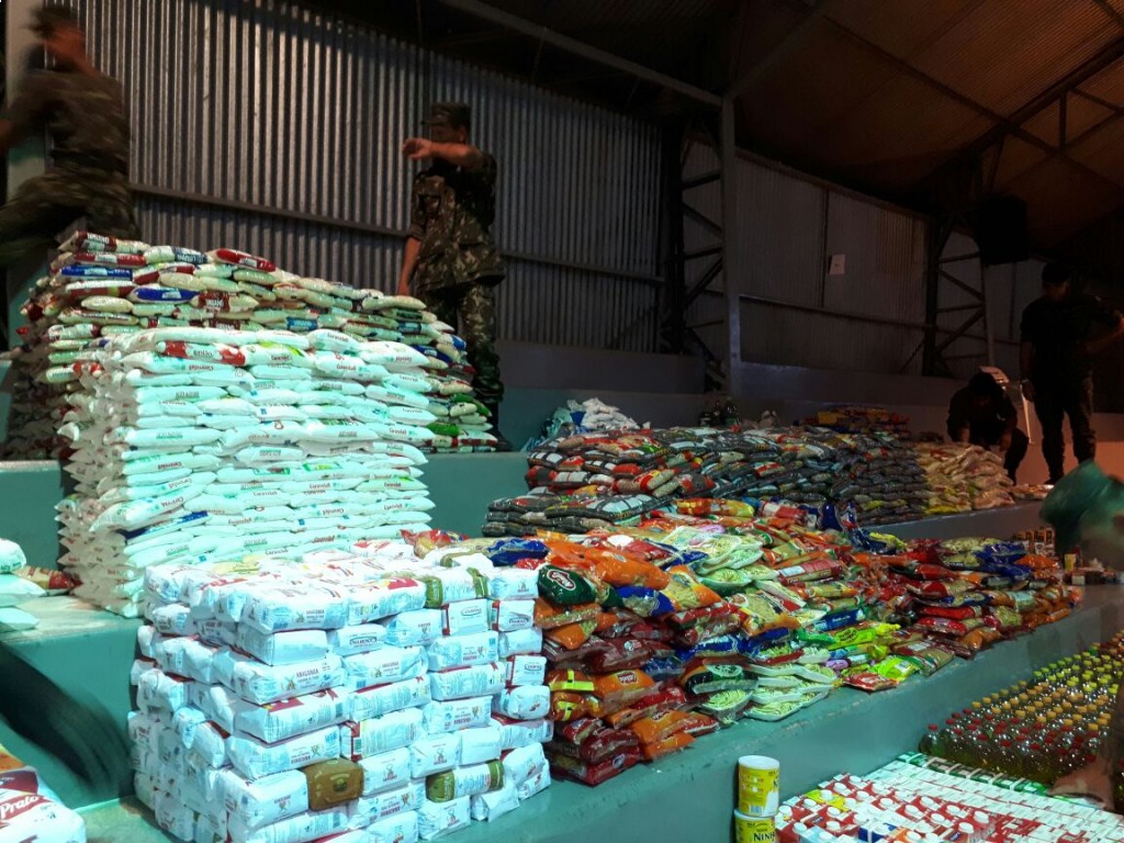 A ARRECADAÇÃO OCORREU EM 10 (DEZ) SUPERMERCADOS DE GUARAPUAVA E TAMBÉM COM A ARRECADAÇÃO NOS BAIRROS DA CIDADE COM OS CAMINHÕES DO EXÉRCITO. TODA A ARRECADAÇÃO FOI CONTABILIZADA CONTANDO COM MAIS DE 7 TONELADAS DE ALIMENTOS DOADOS E 5 TONELADAS DE PEÇAS DE VESTUÁRIO E CALÇADOS, SUPERANDO EM MUITO A ARRECADAÇÃO DO ANO DE 2017.