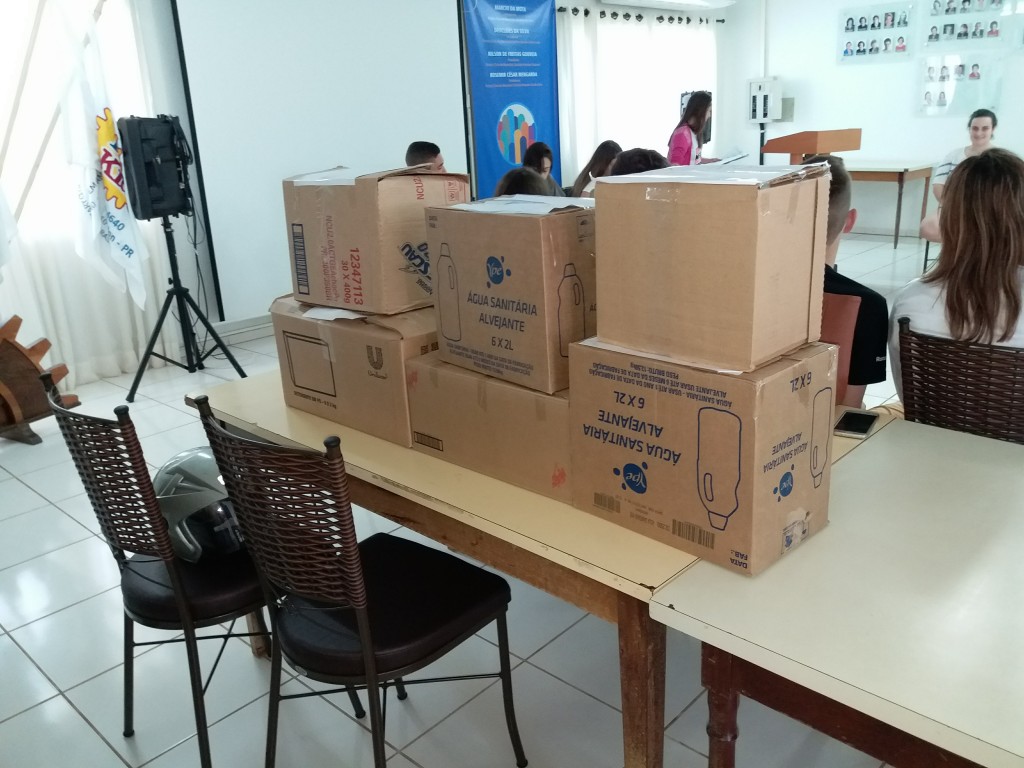 Na reunião do Interact, realizada no dia 12 de maio, os companheiros do Rotary Club de Marechal Cândido Rondon 25 de Julho, fizeram a entrega de materiais de limpeza, para o projeto desenvolvidos pelos interactianos em prol da ONG Arca de Noé.
