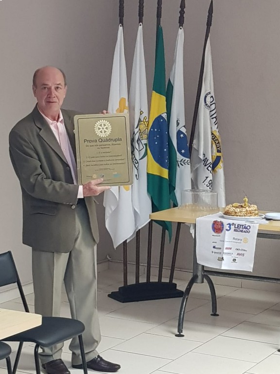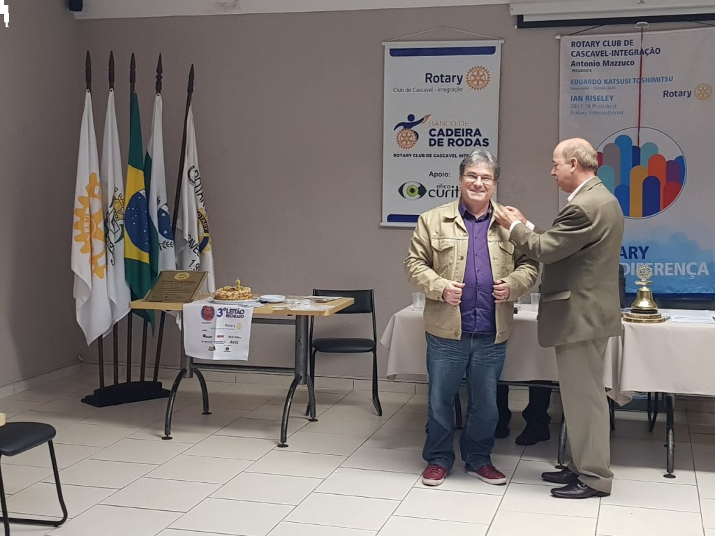 Também foram entregues as comendas da Fundação Rotária pelas contribuições no ano 2017/2018 sendo: Titulo Paul Harrys para Jonathan Corbani, 2 Safiras para o companheiro Dario Duarte Vieira e 2 Rubis para o companheiro Wilson Virginio Fistarol.